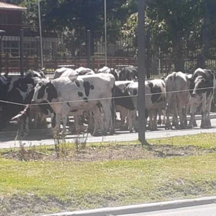 Las imágenes difundidas por testigos mostraron a los animales caminando desorientados entre los vehículos, mientras los efectivos intentaban guiarlos hacia un sector seguro.