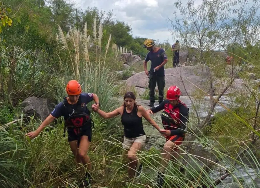 Según se informó, la mujer —oriunda de Córdoba Capital— se encontraba sobre una isla de piedras en pleno río cuando el nivel del agua aumentó de manera súbita, dejándola sin posibilidad de regresar por sus propios medios.