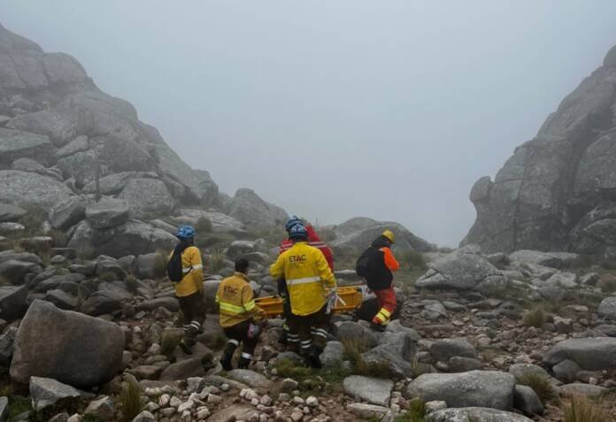 Según se informó, el rescate se realizará mediante un sistema de traslado en camilla (tabla) y a pie, debido a las condiciones del terreno.