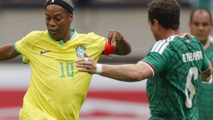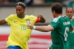 Pasado de peso, Cuauhtémoc Blanco falló con un golpe de zurda en el inicio del juego y fueron los brasileños los que tomaron ventaja, cuando Adriano, mundialista en Alemania 2006, convirtió, al aceptar un balón del mítico Ronaldinho y anotar de zurda.