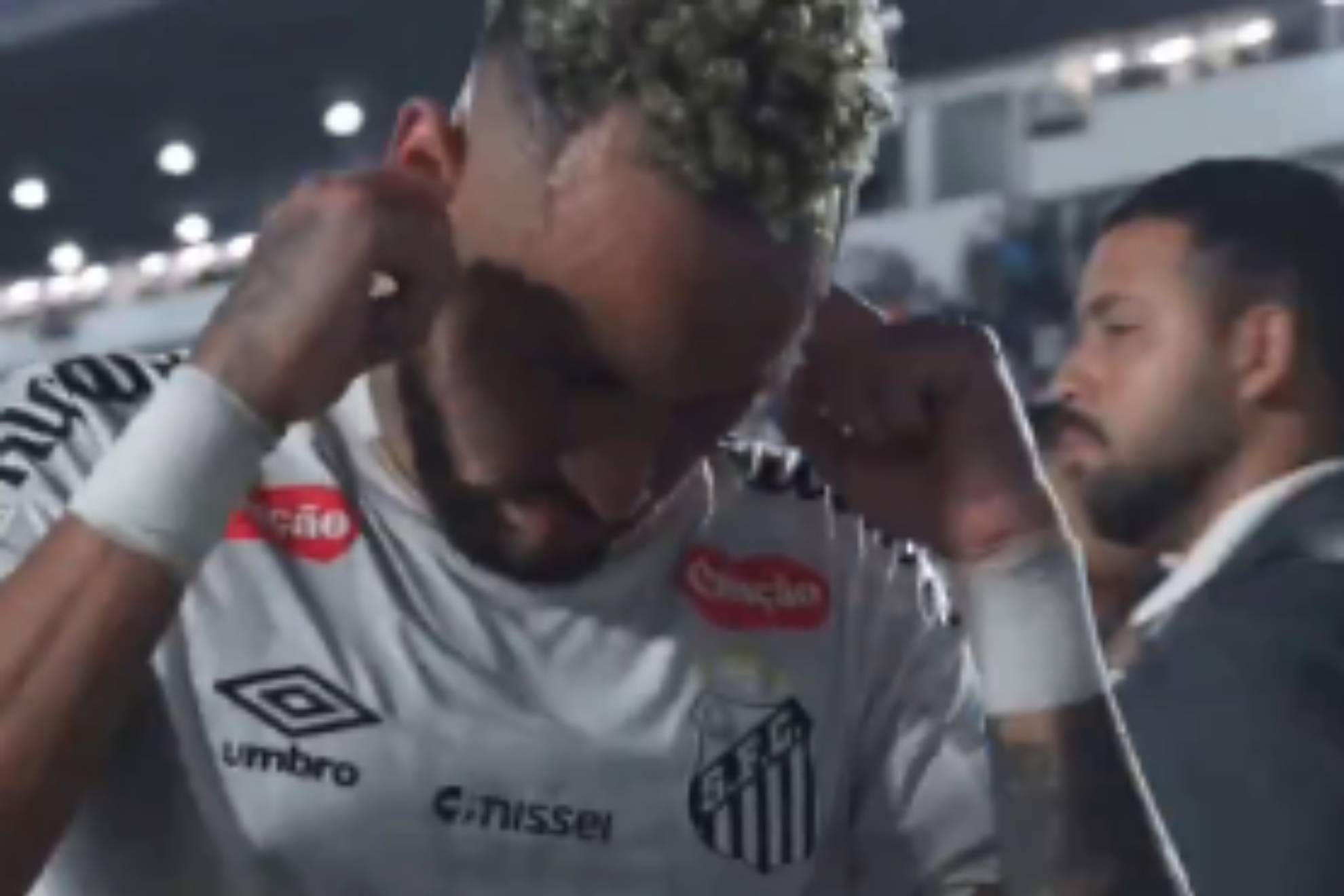 “Ha llegado el día en que tengo que explicar por qué me rasqué la oreja. En serio, están siendo demasiado duros y se están pasando de la raya… ¡Es muy triste tener que lidiar con esto! Ningún ser humano puede soportarlo”, escribió el número 10 del Santos en una publicación acompañada de un vídeo que lo muestra dirigiéndose a los vestuarios.