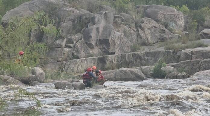 Una mujer de 56 años fue rescatada en medio del cauce del río Los Sauces tras quedar aislada por una repentina crecida, en un hecho ocurrido este jueves al mediodía en el balneario Los Elefantes, en Mina Clavero.
