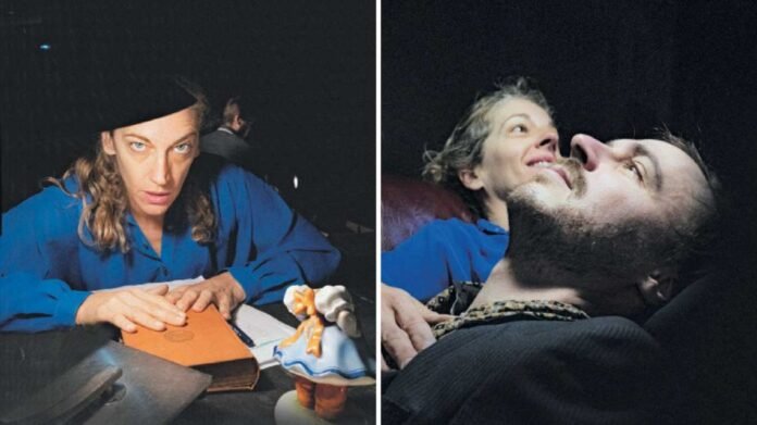 La puesta materializa estas búsquedas. El escenario se plantea como un terreno permeable y cambiante: una mesa cubierta de objetos, cajas con recuerdos y un piano que interrumpe el silencio. La iluminación, construida con fuentes móviles, funciona como dispositivo activo de montaje en tiempo real: cada foco abre un plano, un recuerdo, una capa de afecto. Los intérpretes permanecen en escena aun cuando no están en acción, generando una atmósfera de presencias latentes que sugiere que la identidad también se compone de ausencias, de ecos y de espectros.