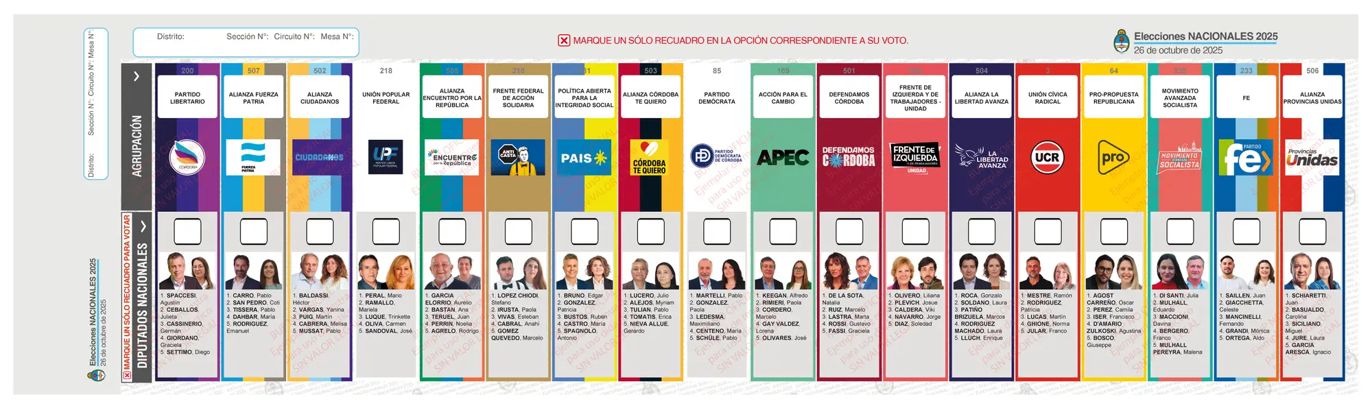 En Córdoba hay 18 listas que se presentaron para estas elecciones. Para votar con el sistema de Boleta Única de Sufragio el elector debe marcar con una tilde o una cruz el casillero correspondiente a la lista que elija.