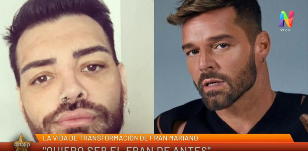 Fran Mariano saltó a la fama por ser el Fan de Graciela Alfano y su participación en Cuestión de peso, certamen en el que logró cambiar su vida y logró bajar 92 kilos, además de que desea parecerse a Ricky Martín e intentar transformarse constantemente: por lo que ya lleva 30 operaciones y planea hacerse más cirugías.