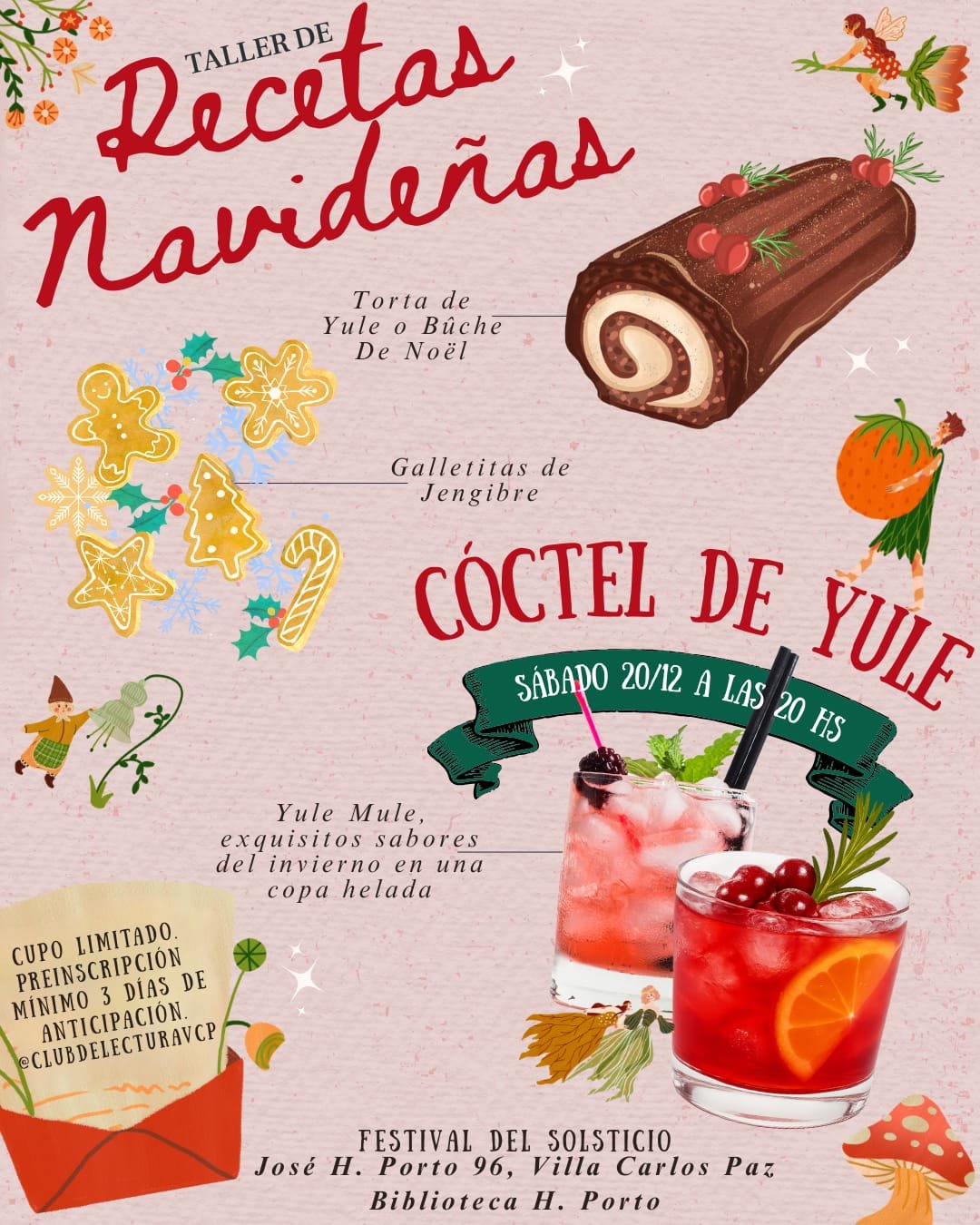 A las 20 horas, el público podrá participar de un taller de recetas navideñas, donde se enseñará a preparar clásicos invernales como la torta de Yule o Bûche de Noël, galletitas de jengibre y el cóctel Yule Mule, pensado como brindis especial del invierno. Esta actividad cuenta con cupo limitado y requiere preinscripción con al menos tres días de anticipación.