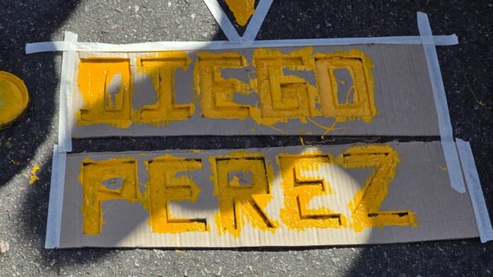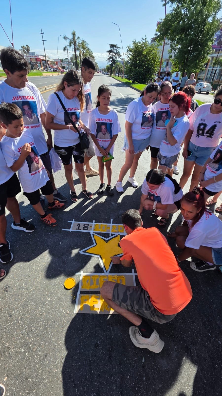 Este miércoles por la tarde se llevó a cabo la pintada de la Estrella Amarilla en memoria de Diego Pérez, en la esquina de San Martín y avenida Vélez Sársfield, en un acto cargado de emoción, recuerdo y un fuerte mensaje de concientización vial.