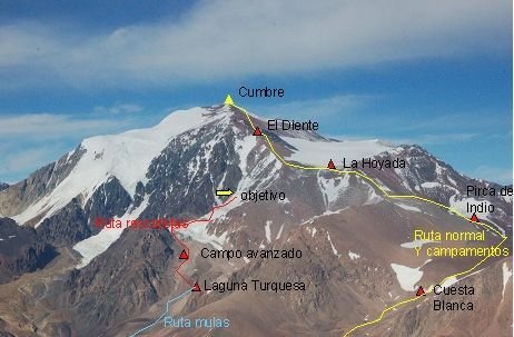 Rutas de ascenso al Cerro Mercedario.