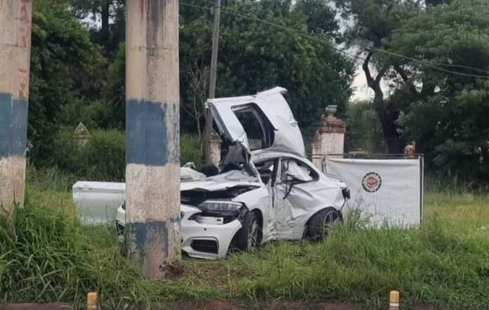 Por causas que se tratan de establecer, un automóvil marca BMW, modelo 240i, conducido por un hombre mayor de edad, quien iba acompañado por otras cuatro personas, dos hombres y dos mujeres, una de ellas menor, colisionó violentamente contra un poste de hormigón de alta tensión.