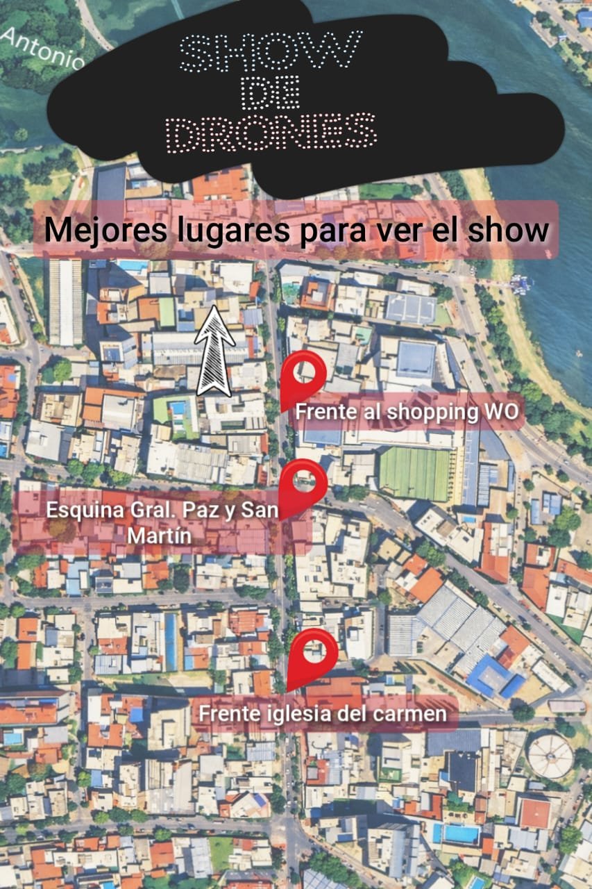 Si bien los drones volarán a una altura considerable sobre el Puente Central (Puente Carena), los organizadores sugieren alejarse un poco de la zona de despegue para apreciar mejor las figuras: